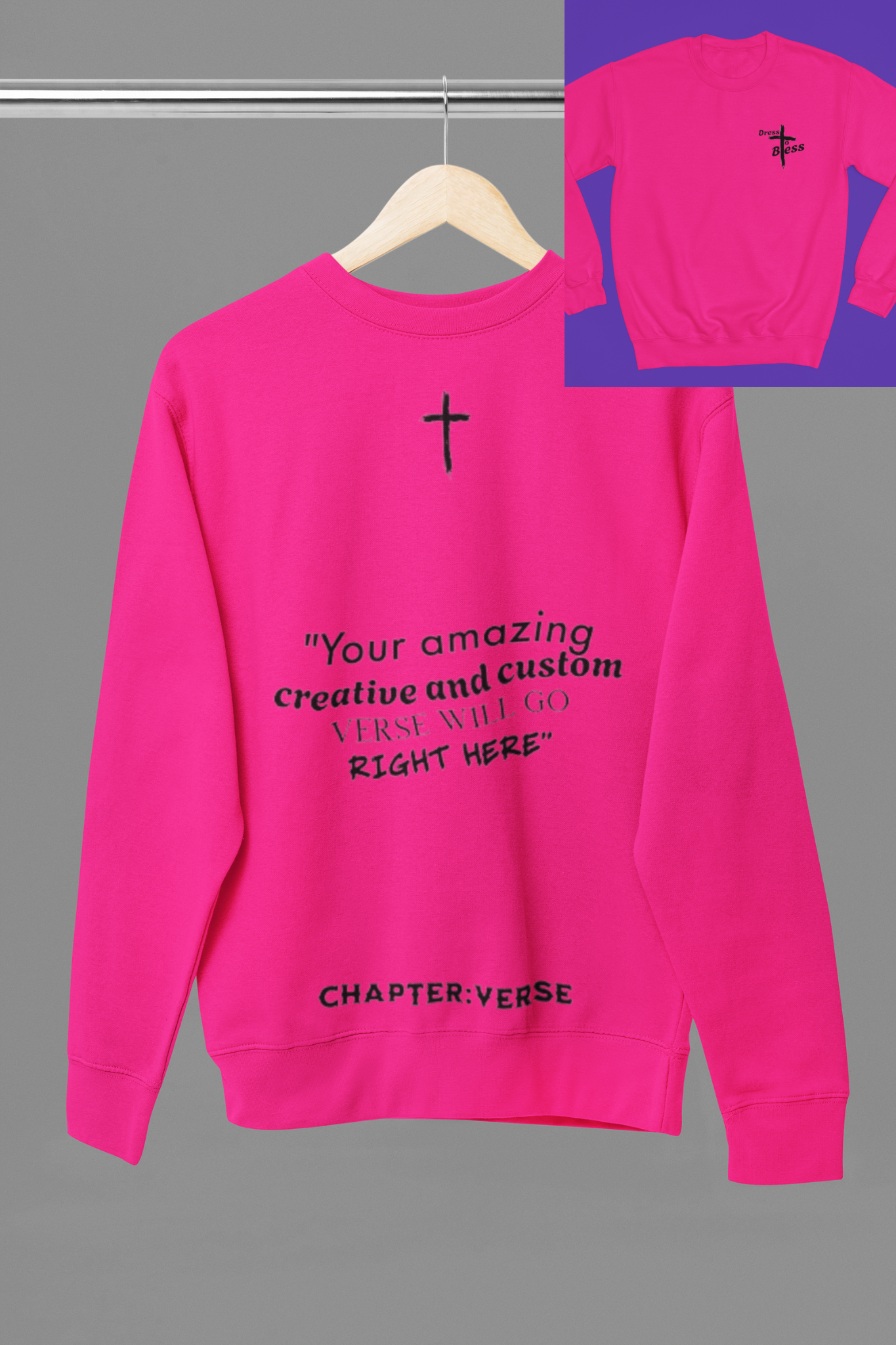 Custom Verse Only Adult “Dress To Bless” Cross Logo Unisex Crewnecks